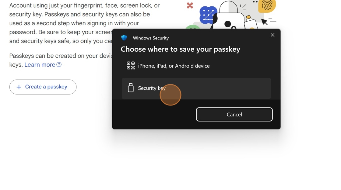 8. Click "Security key"