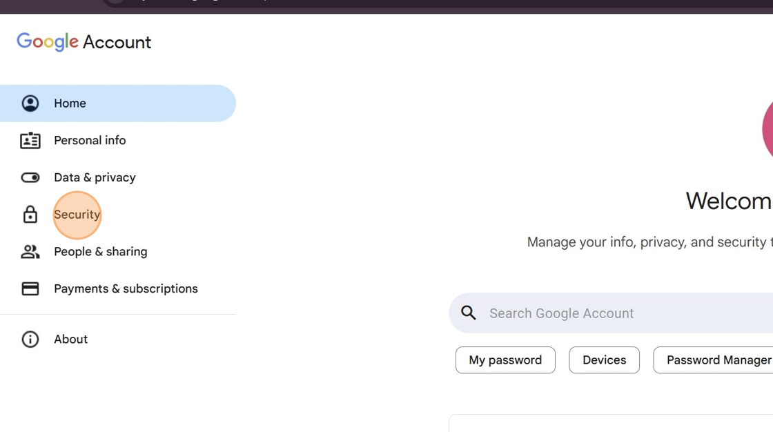 4. In the Google Account menu, Click "Security"