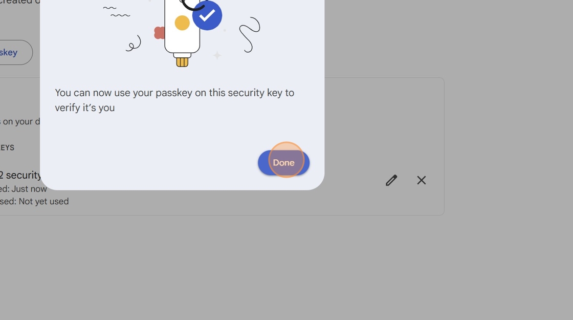 10. Click "Done". You've now enrolled your YubiKey with your Google Account.