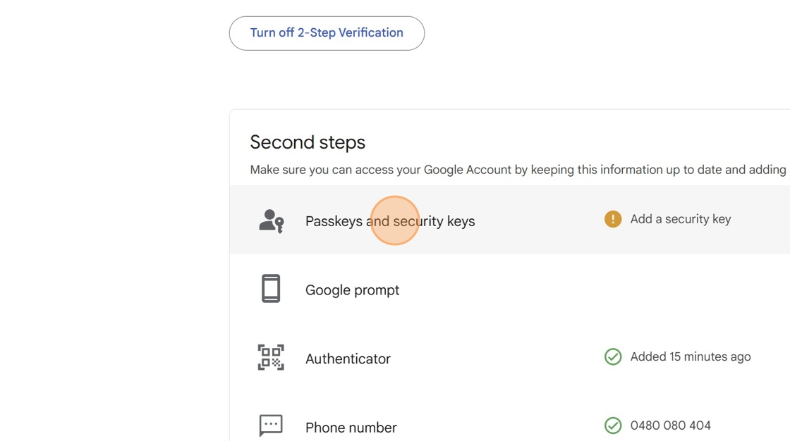 6. Click "Passkeys and security keys"