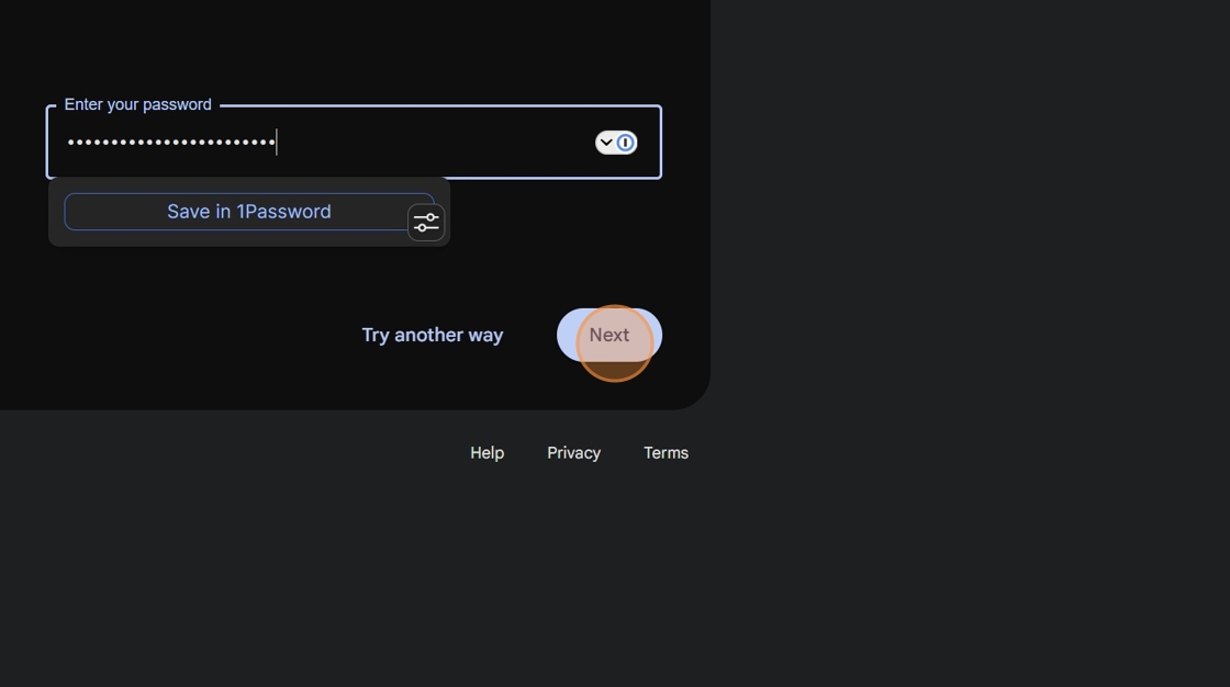 3. Enter your password and click next. We recommend 1Password for creating and storing unique complex passwords for every service to improve your account security.