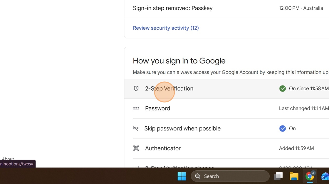 5. Click "2-Step Verification"