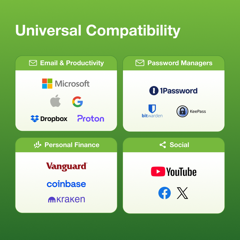 Jelentkezzen be biztonságosan bármilyen kompatibilis eszközről, beleértve az asztali számítógépet, laptopot vagy mobiltelefont. Egyetlen kulcs védi az összes fiókját az adathalászattól és a jogosulatlan hozzáféréstől.