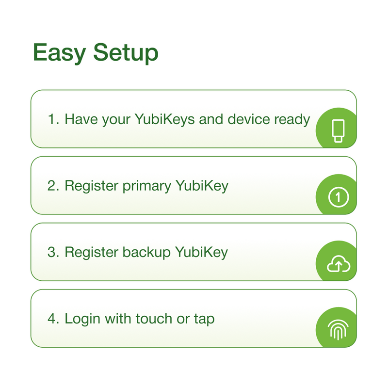 Amikor a bejelentkezés során kéri a rendszer, egyszerűen helyezze be vagy koppintson a YubiKey-jére. Ez azonnal ellenőrzi a személyazonosságát erős titkosítással, jelszavak vagy kódok nélkül.